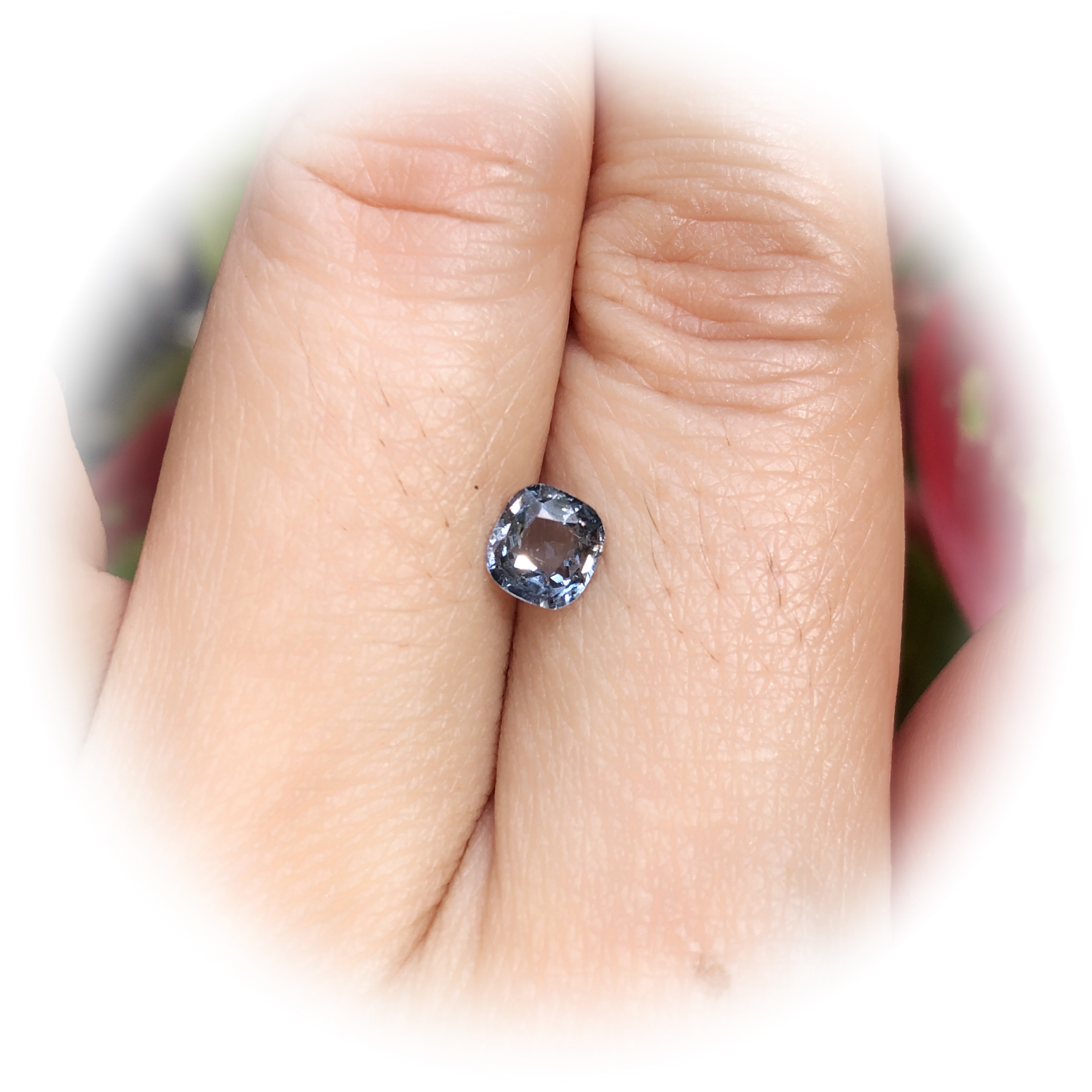 #พลอยสปิเนลพม่า สีธรรมชาติเทาประกายน้ำเงินอ่อน สีคลาสสิคเล่นไฟดี ขนาด 6.0x5.5 มิล #spinel พลอยดิบความแข็ง 8 ซึ่งใกล้เคียงกับพลอยตระกูลซัฟไฟร์