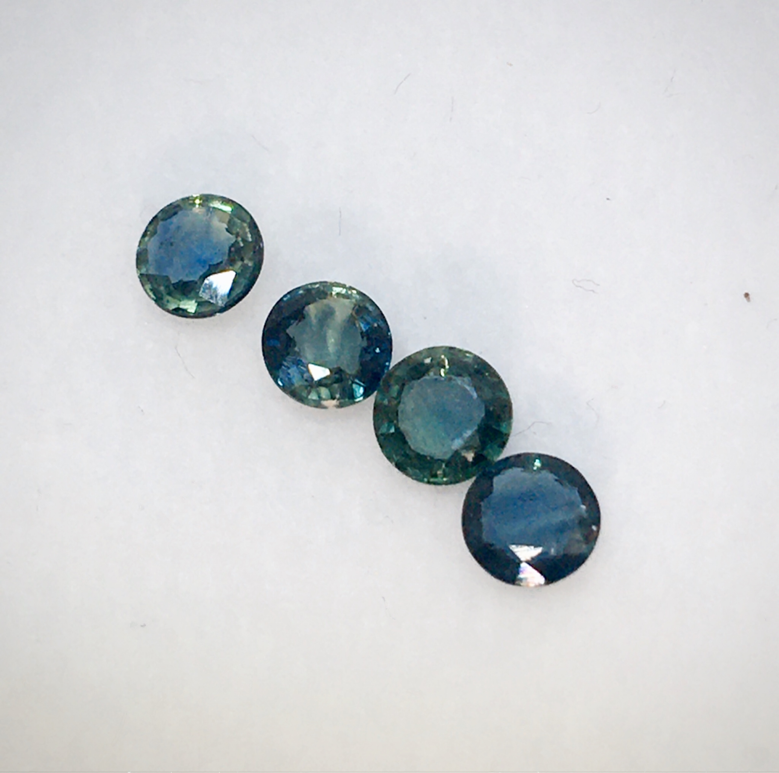 #พลอยเขียวส่อง จากบ่อบางกะจะ พลอยธรรมชาติสีเขียวประกายน้ำเงินคลาสสิคเป็นเสน่ห์ของพลอยเมืองจันทบุรี จัดชุด 4 เม็ด 1.31 กะรัต ขนาดพลอยเฉลี่ย 4.2-4.3 มิล #green sapphire