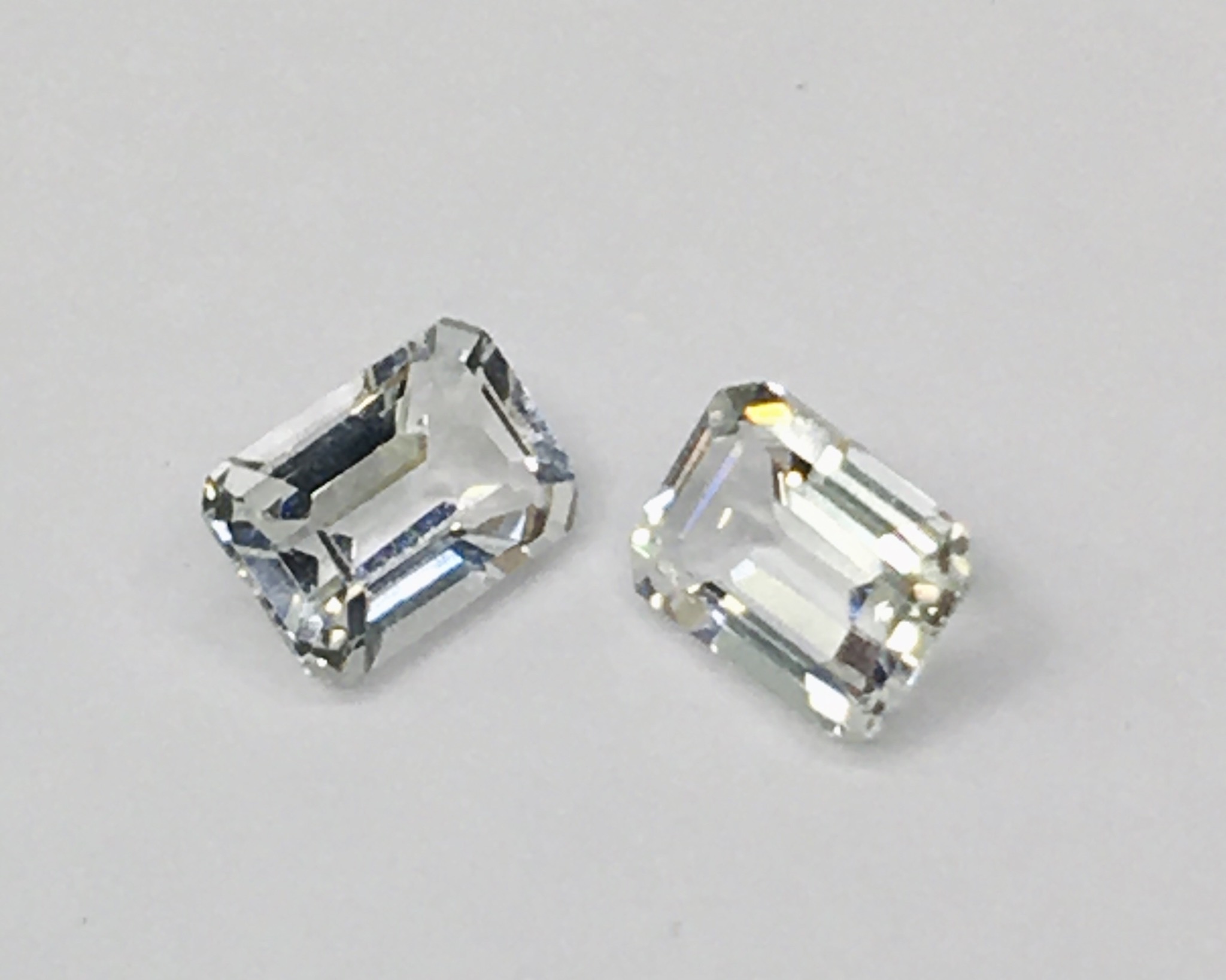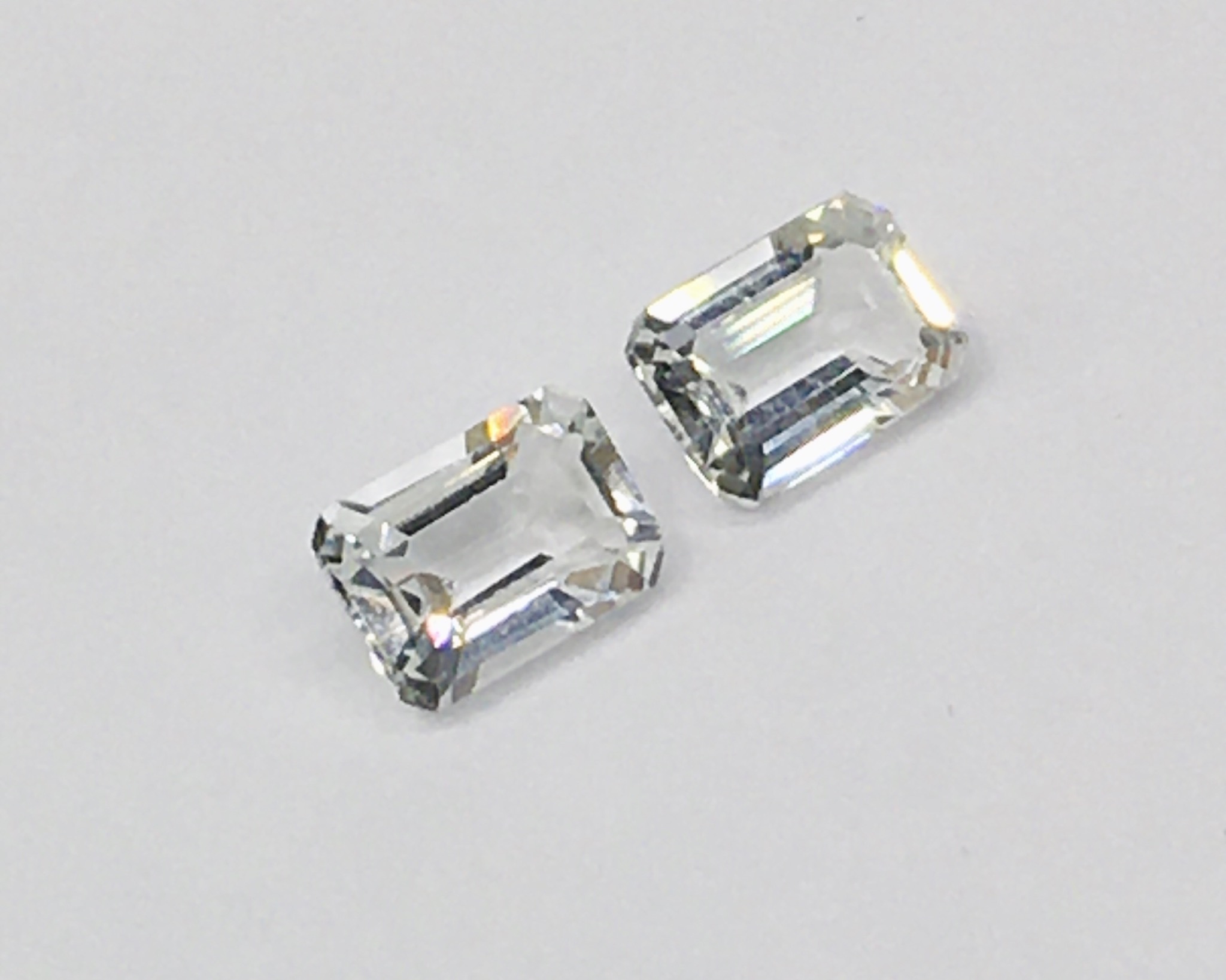 #พลอยโทแพสคู่นี้จับคู่กันได้ลงตัว #white topaz อัญมณีสีขาวใสสะอาดมาก เจียระนัยทรง #เหลี่ยมมรกต พลอยทรงนี้ทำเครื่องประดับอะไรก็สวยเก๋เป็นเอกลักษณ์ของผู้สวมใส่ขนาดพลอย 7x5 มิล สินค้าส่งพร้อม #ใบรับประกันพลอยแท้