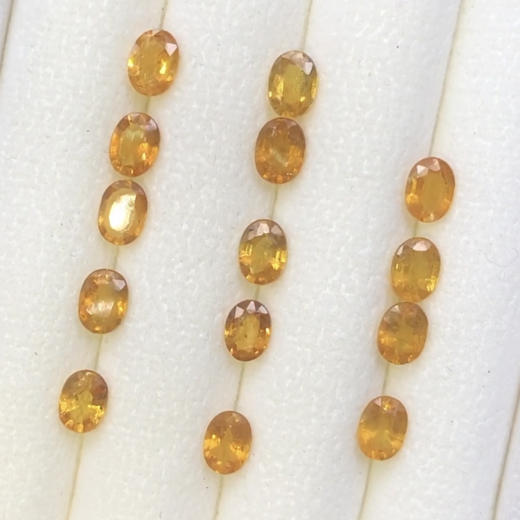 Thailand yellow sapphire size 7x5-7.2x5.5 mm. set 14 pcs, luster very good - excellent