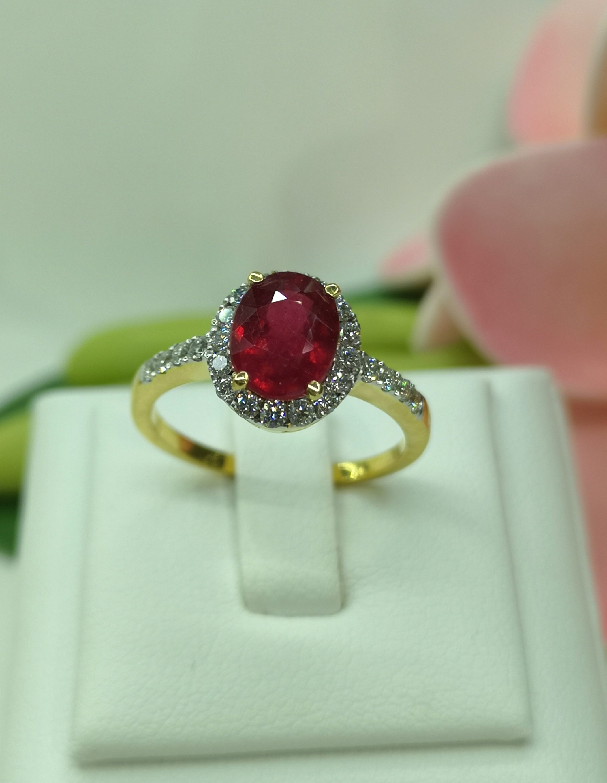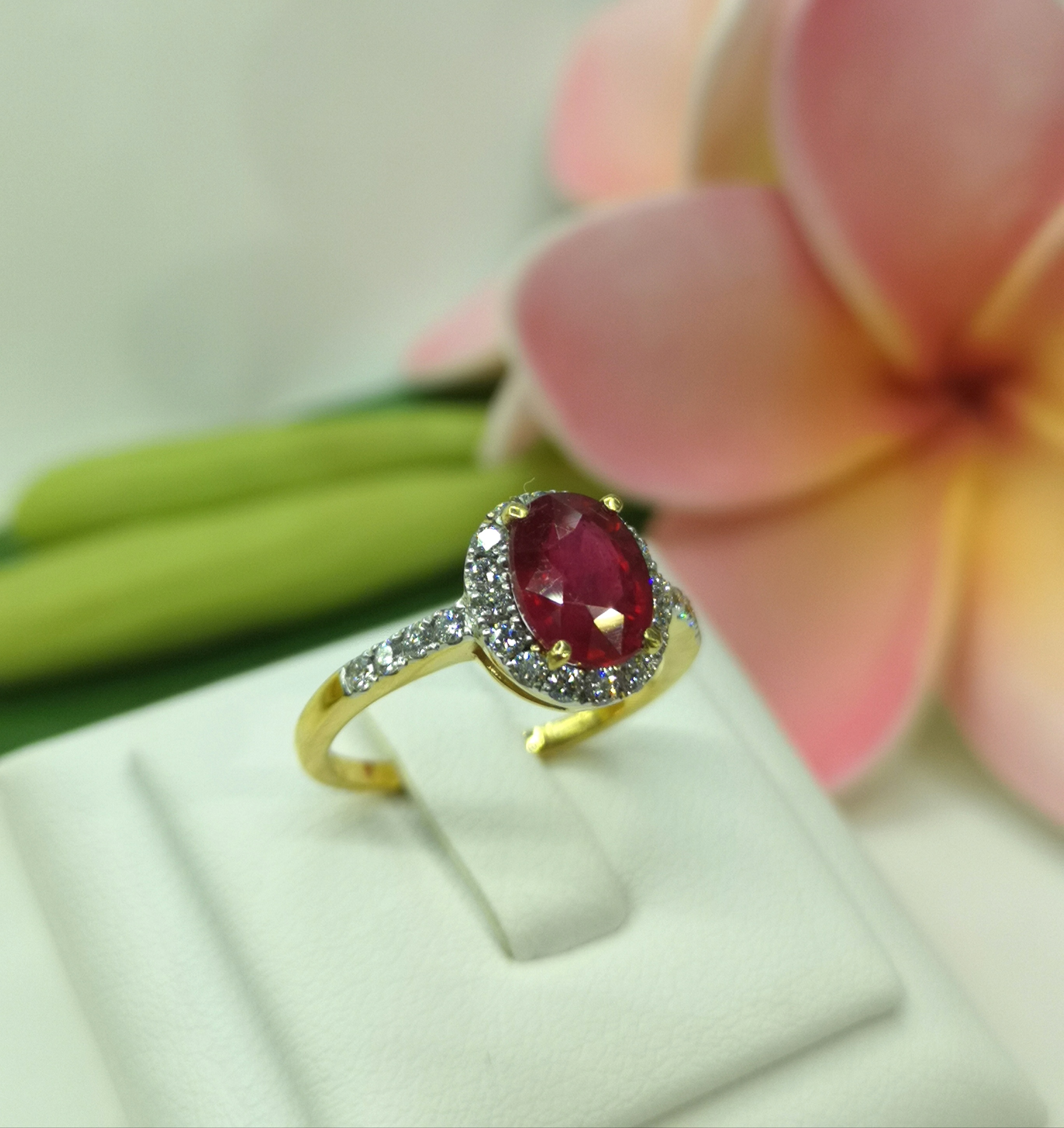 แหวนพลอยทับทิมล้อมเพชร รุ่นอมตะสั่งทำกี่ครั้งกี่คนั้งก็ยังหลงใหลในความสวยคลาสสิค ช่วยเสริมบุคลิกลูกค้าให้ดูภูมิฐาน "Ruby diamonds ring"