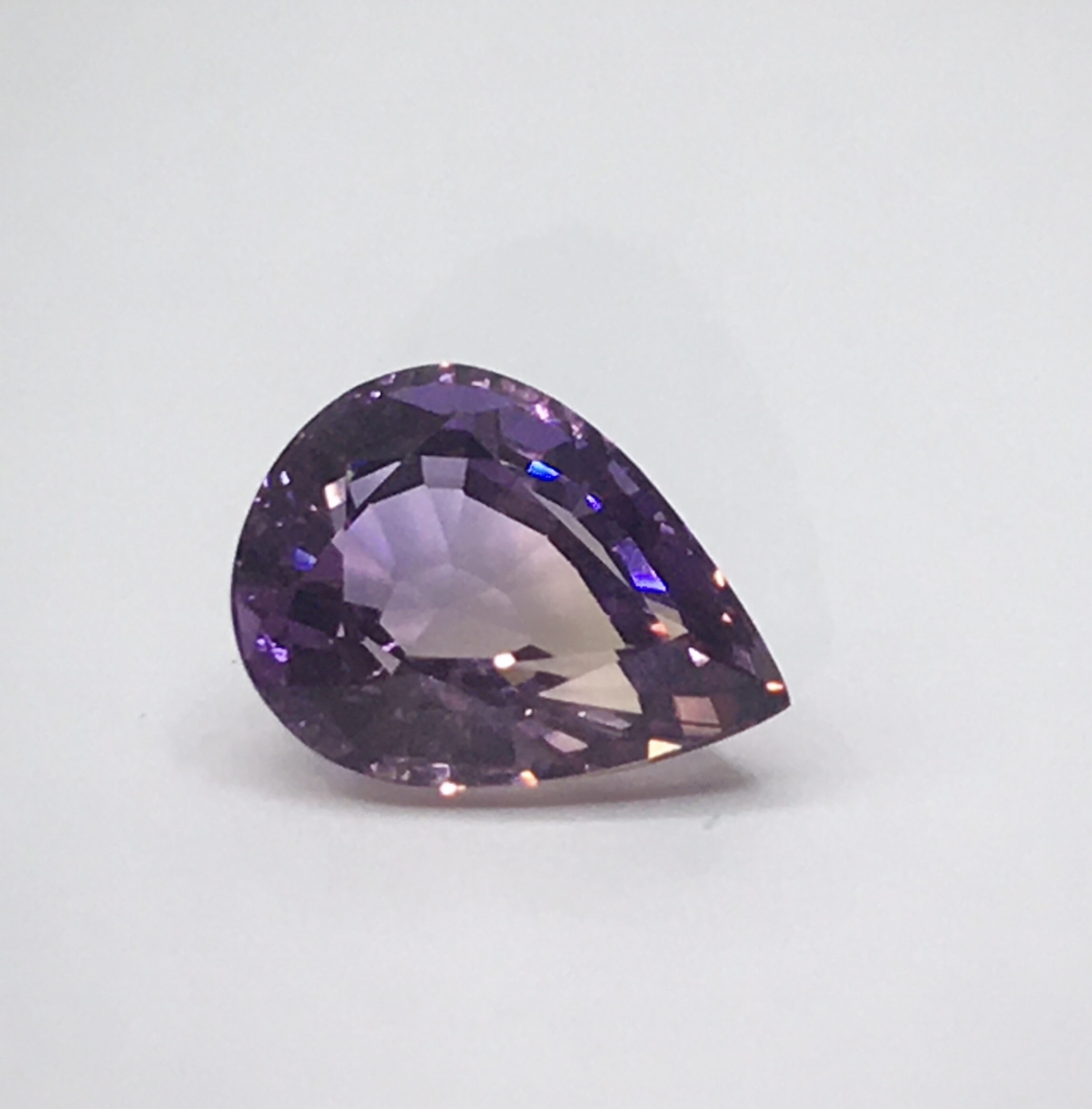 #พลอยอะเมทริน เม็ดใหญ่ พลอยธรรมชาติเนื้อสะอาดสวยใสเล่นไฟระยิบ เม็ดนี้ขนาดพอเหมาะสำหรับทำจี้ 15.04 กะรัต ทรงหยดน้ำ สวยแปลกตาด้วยสีที่ลงตัวของ สีม่วงอเมทีสต์ผสมอย่างลงตัวกับสีเหลืองทองของซิทริน พลอยมีใบรับประกัน