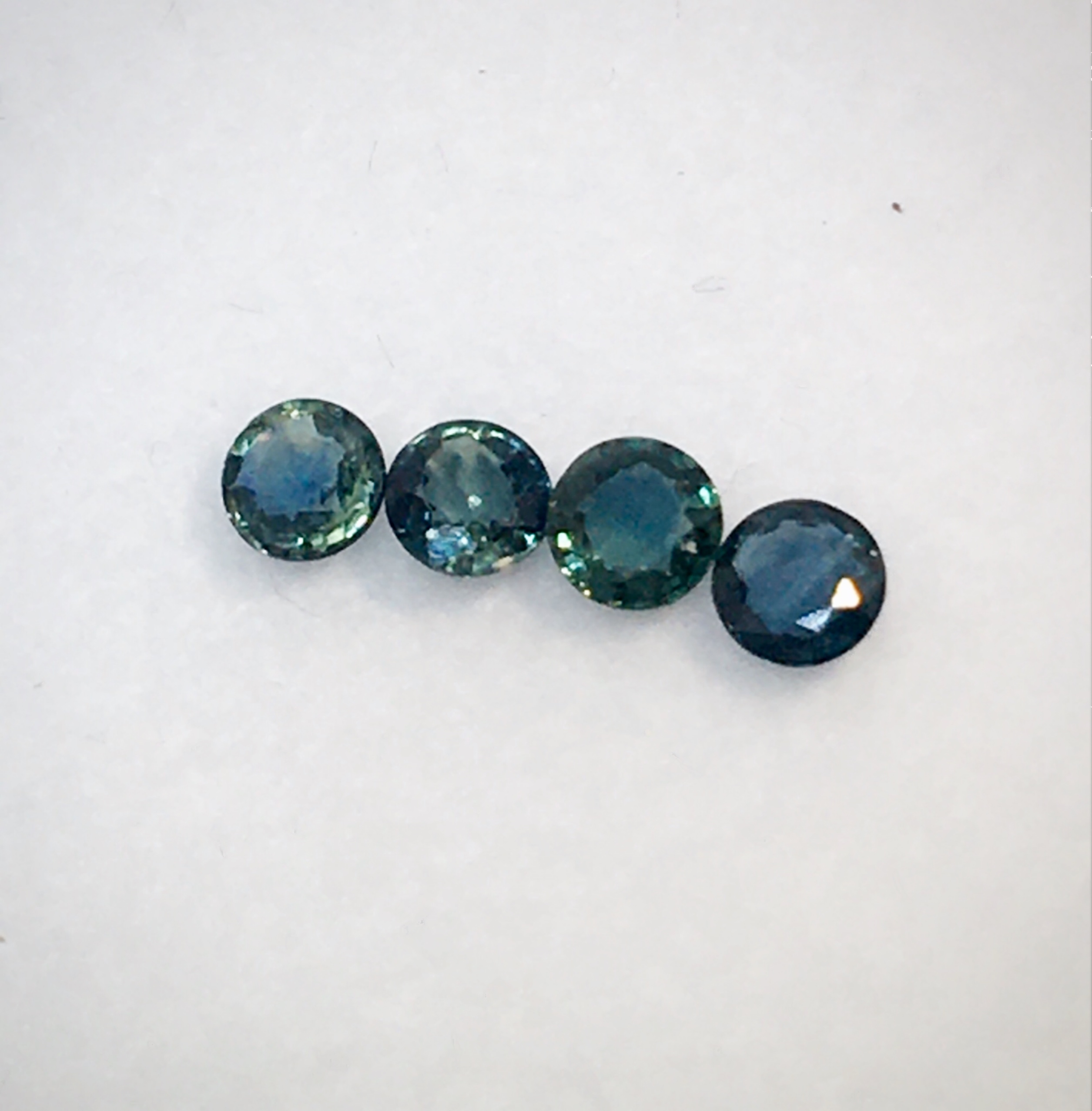 #พลอยเขียวส่อง จากบ่อบางกะจะ พลอยธรรมชาติสีเขียวประกายน้ำเงินคลาสสิคเป็นเสน่ห์ของพลอยเมืองจันทบุรี จัดชุด 4 เม็ด 1.31 กะรัต ขนาดพลอยเฉลี่ย 4.2-4.3 มิล #green sapphire