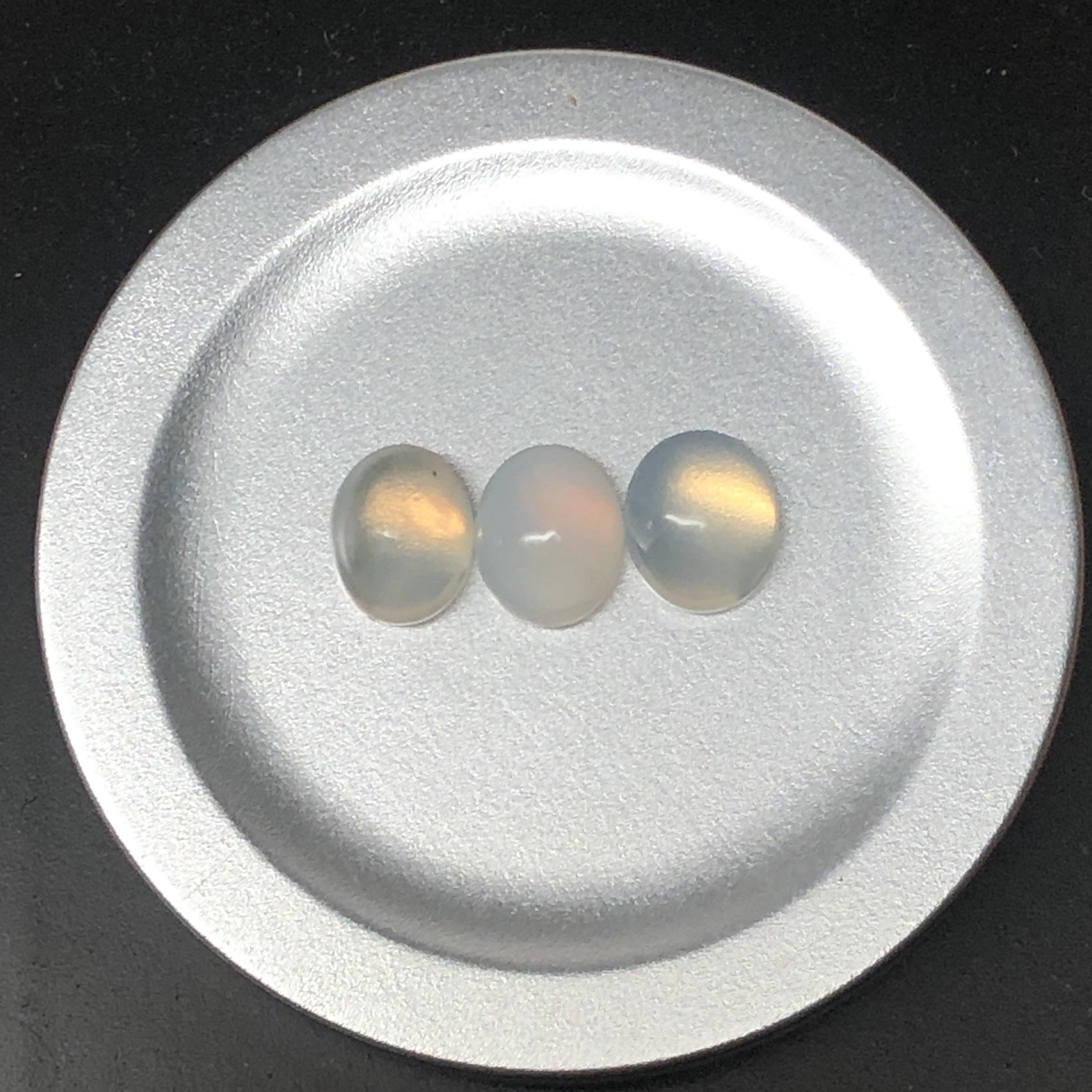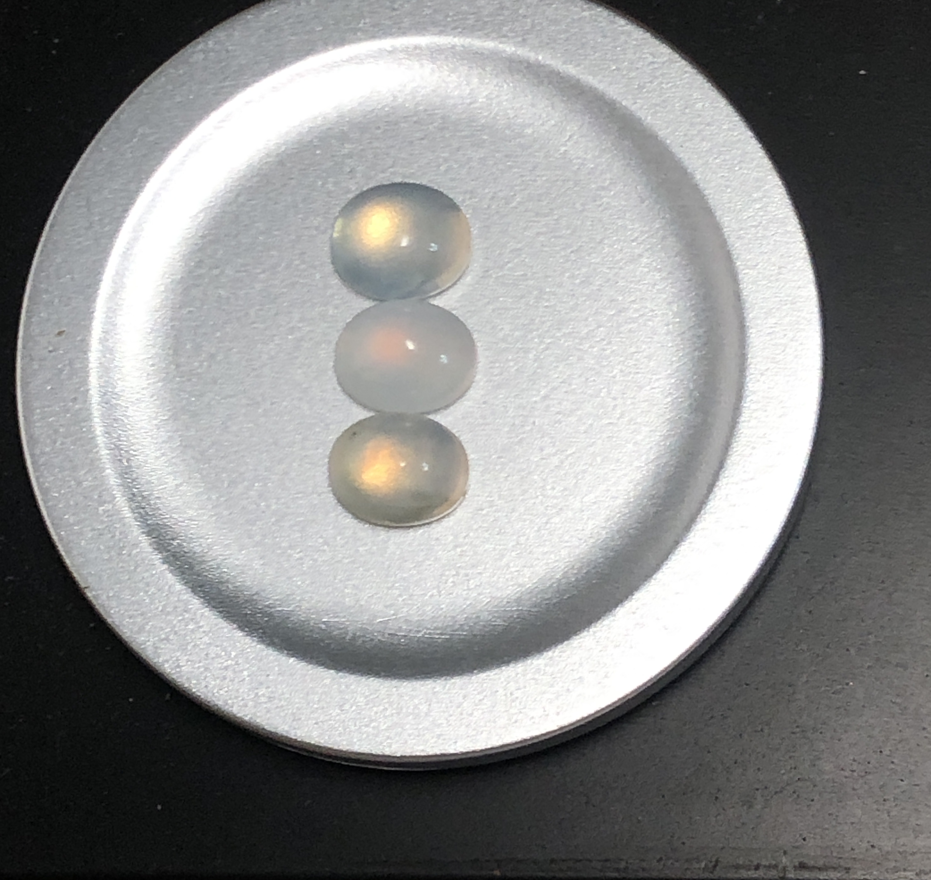 #พลอยมุกดาหาร หรือมูนสโตน ( #Moonstone) ชุด 3 เม็ดหนักรวม 4.88 กะรัต ขนาดเฉลี่ย 8.8x7.0 มิล พลอยดิบธรรมชาติเหชหนึ่งในชุดอัญมณีนพเก้า #มูนสโตนแห่งแสงจันทร์สีขาววาว เชื่อว่ามีพลังนำโชคลาภและสิ่งดีๆมาให้ผู้ครอบครอง