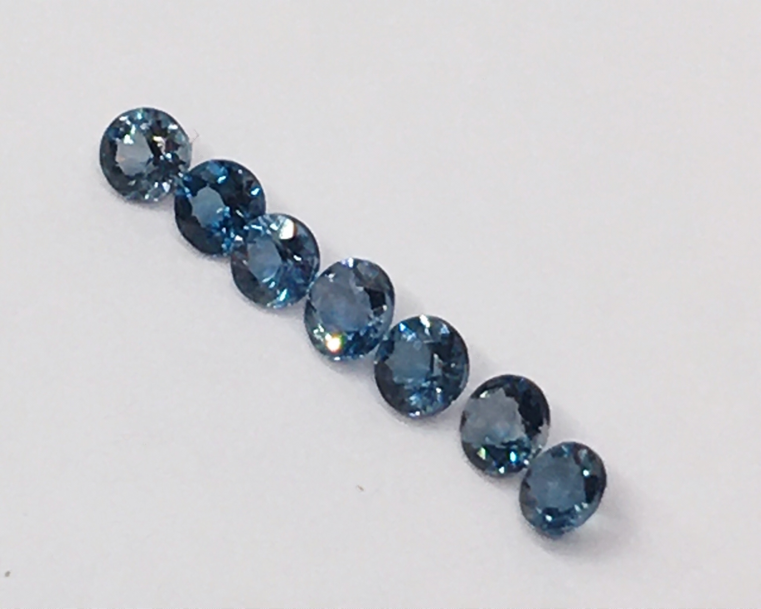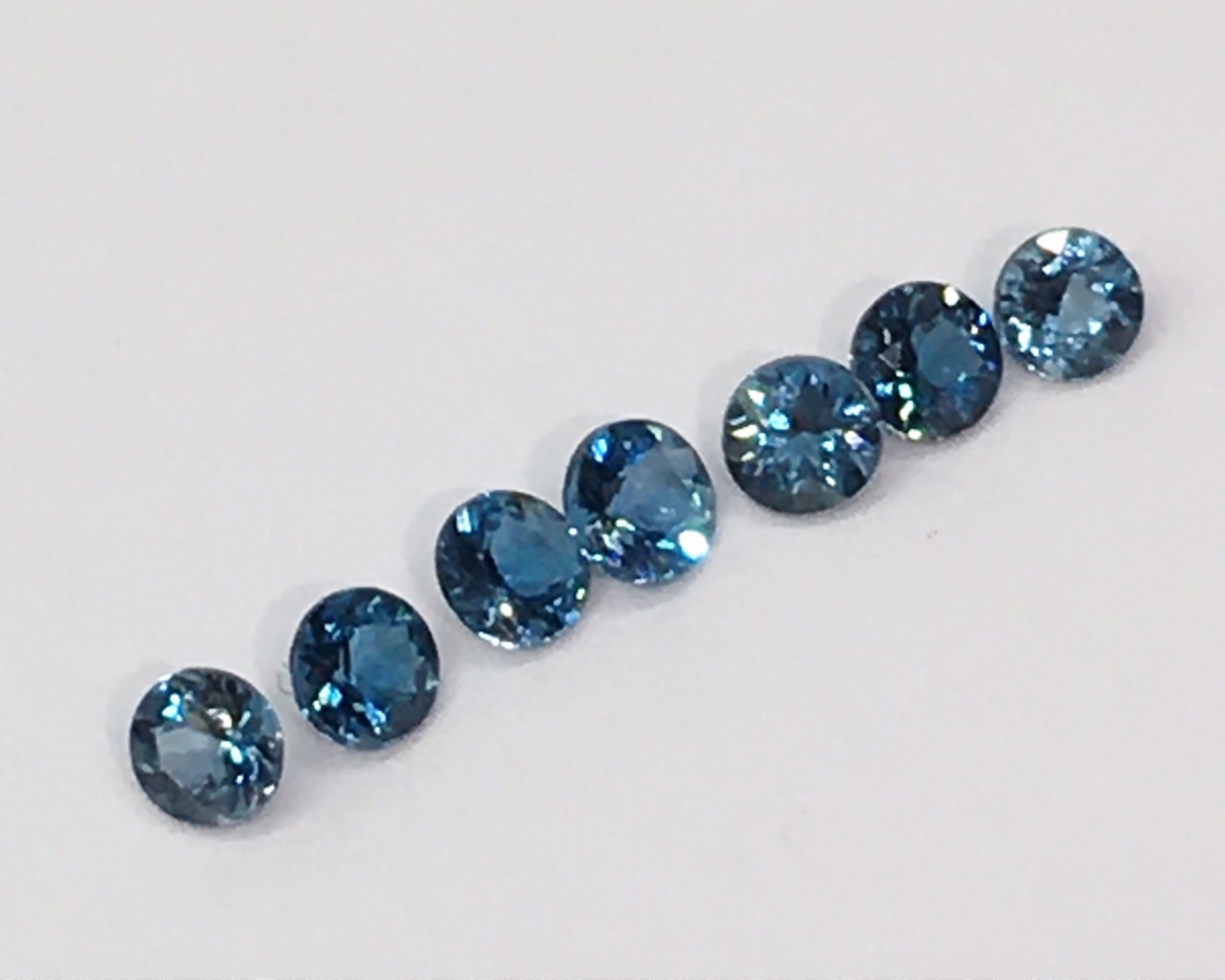 #พลอยบลูโทแพสสีน้ำเงิน ชุด 7 เม็ดขนาดพลอย 3 มิลทรงกลมคัดสีไซด์แล้ว พลอยสีสวยคลาสสิคเล่นไฟระยิบสะอาดตา