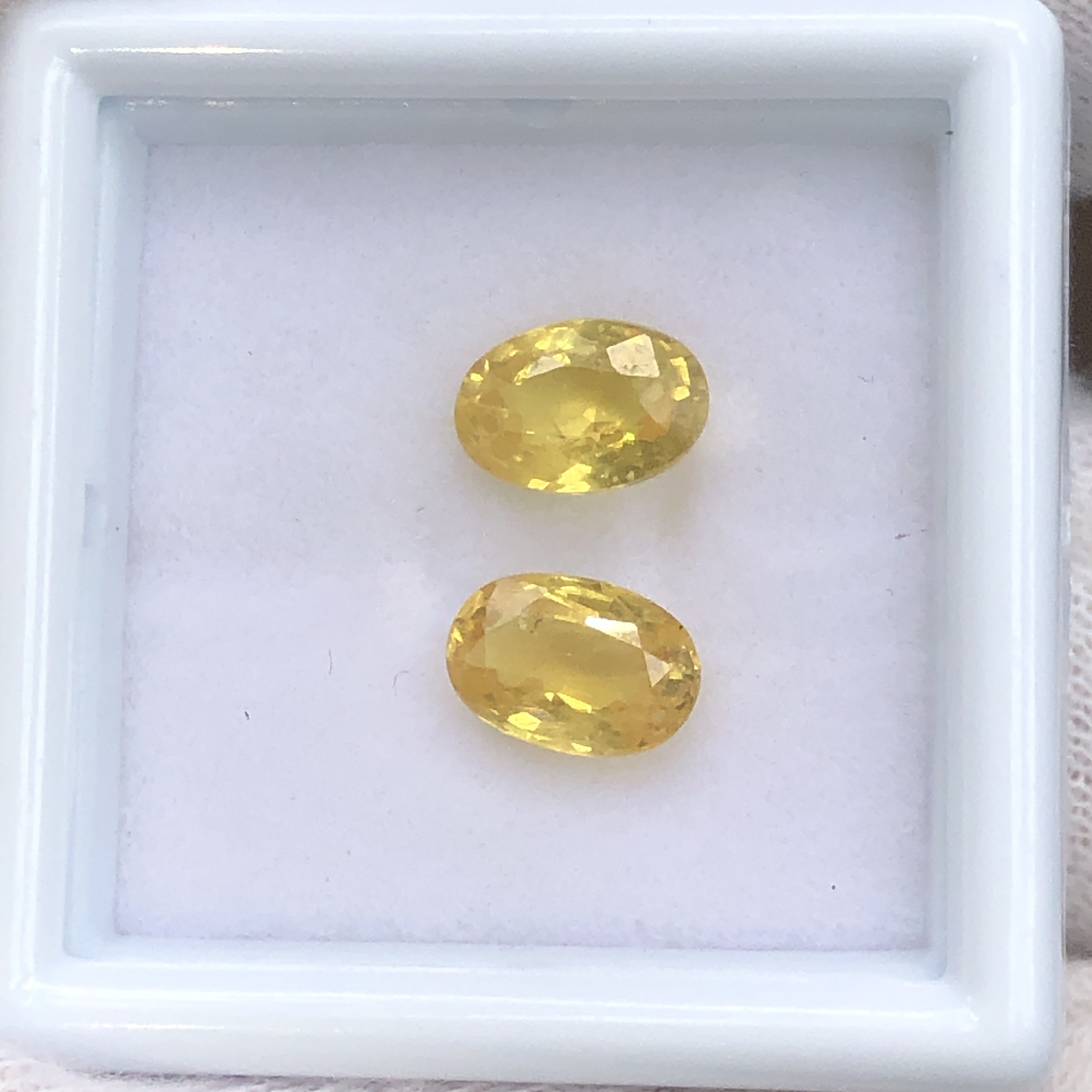 #พลอยบุษราคัม บางกะจะ สีเหลืองอ่อนไฟดีขนาด 7*5 มิล น้ำหนักรวม 2.10 กะรัตต่อคู่ จะทำเป็นต่างหูเม็ดเดี่ยวเก๋ๆหรือล้่อมเพชรให้สวยหรูได้เหมาะสม ขายเป็นคู่เฉลี่ยเม็ดละ 565 บาทเท่านั้น