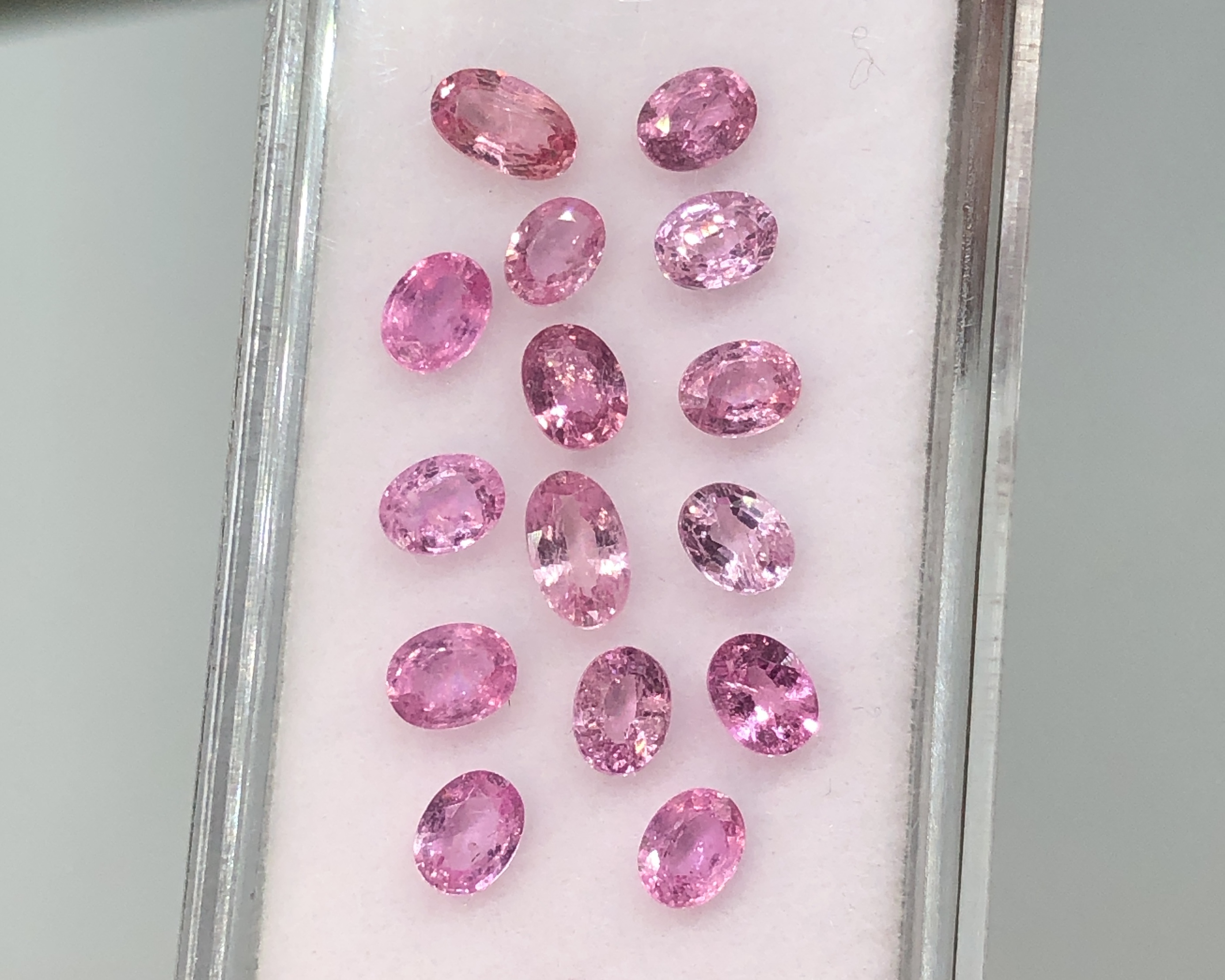#พลอยซัฟไฟร์สีชมพู #pink-sapphire ชุดนี้สีสวยสดใสเนื้อพลอยสะอาด พลอยเผาเก่า น้ำหนักรวม 3.60 กะรัต ทรงไข่ขนาดพลอยเฉลี่ย 4x3-5x3 มิล