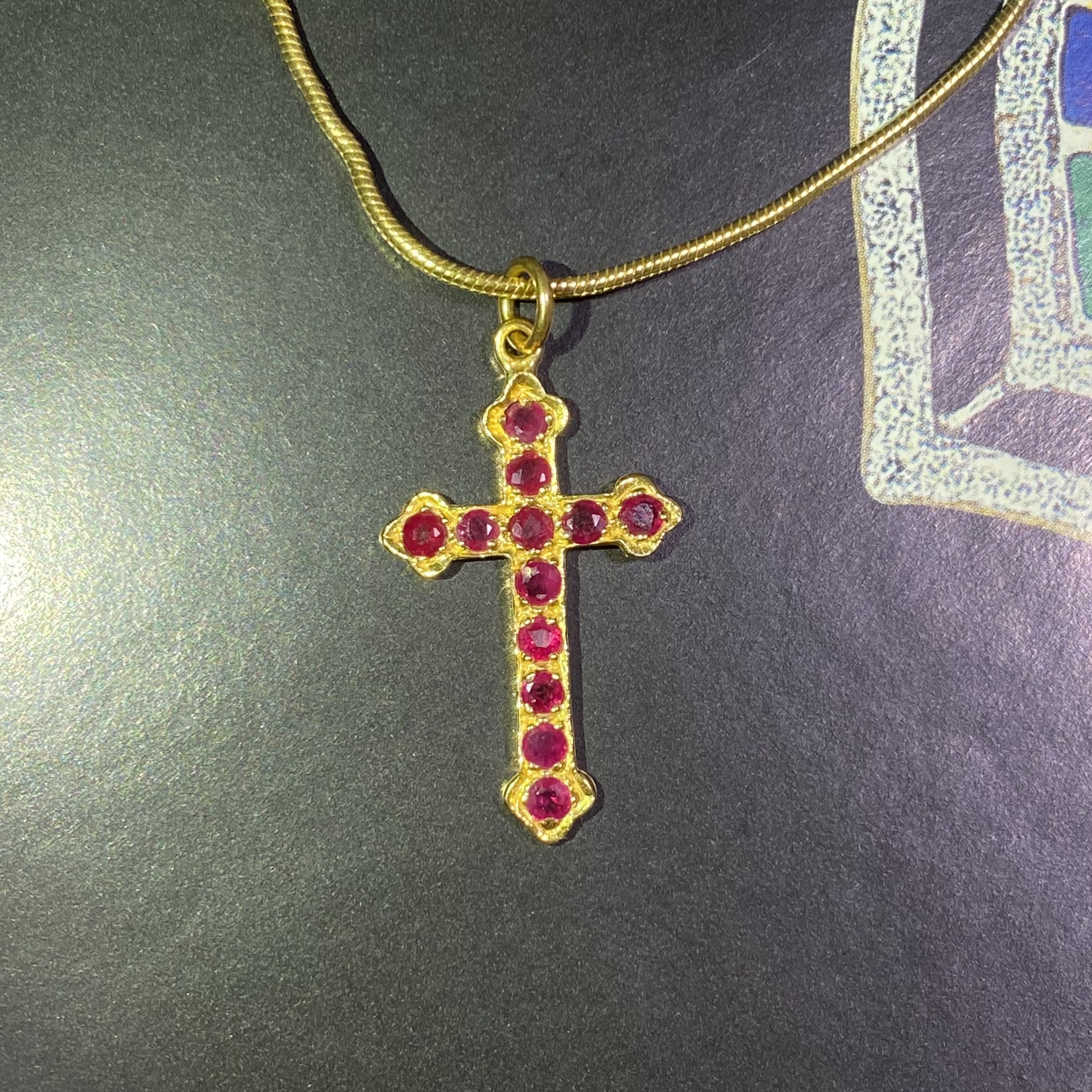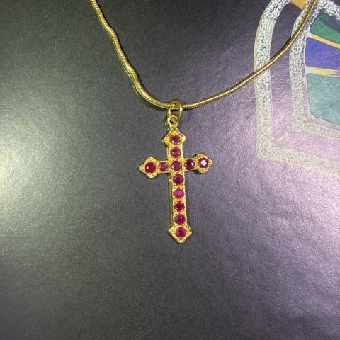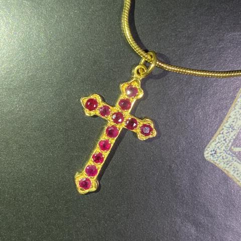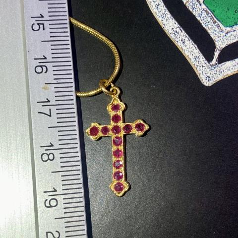 จี้ทรงกางเขนพลอยทับทิมสยาม ตัวเรือนทอง 90 น้ำหนักรวม