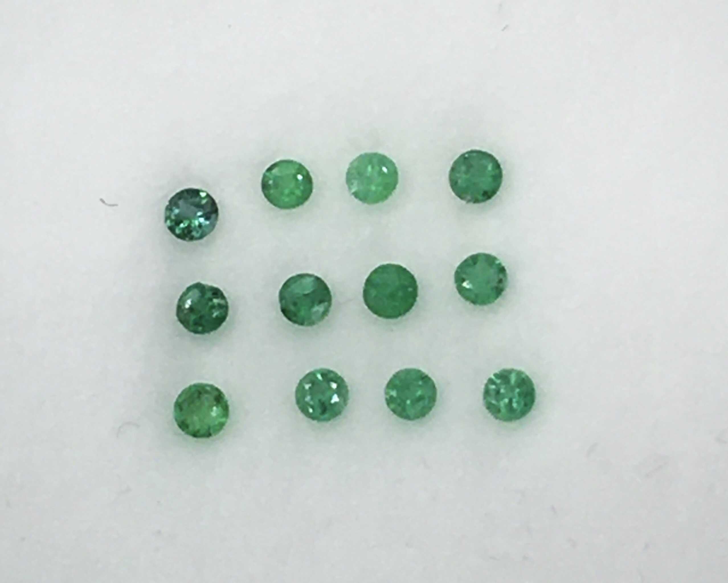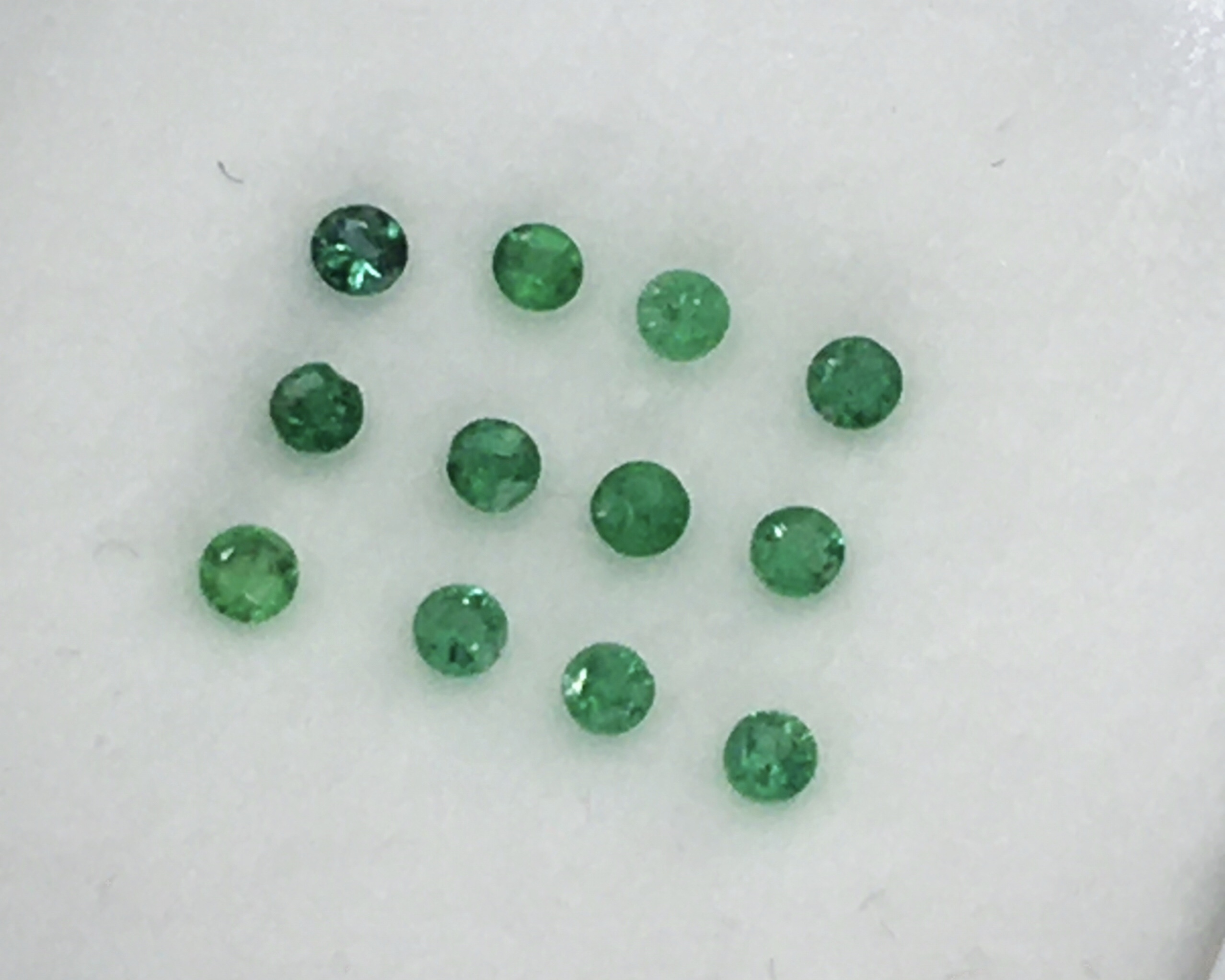 #พลอยมรกตธรรมชาติสีเขียวสะอาด ทรงกลม ขนาดเฉลี่ย 1.9-2.0.0 มิล จัดชุด 12 เม็ด ใช้ประดับพลอยหลักในการทำเครื่องประดับ ชุดสุดท้ายเพียง 880 บาทจากปกติ 1,350 บาท #Emerald