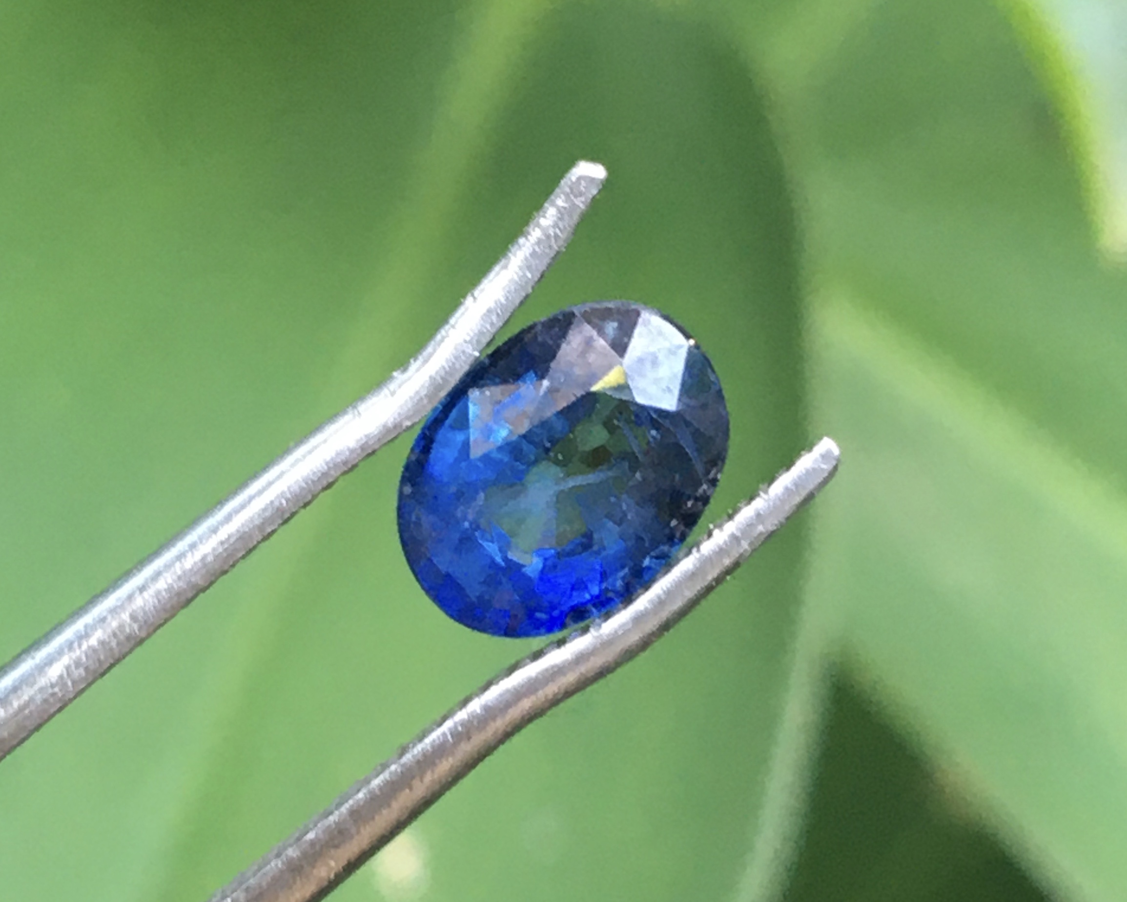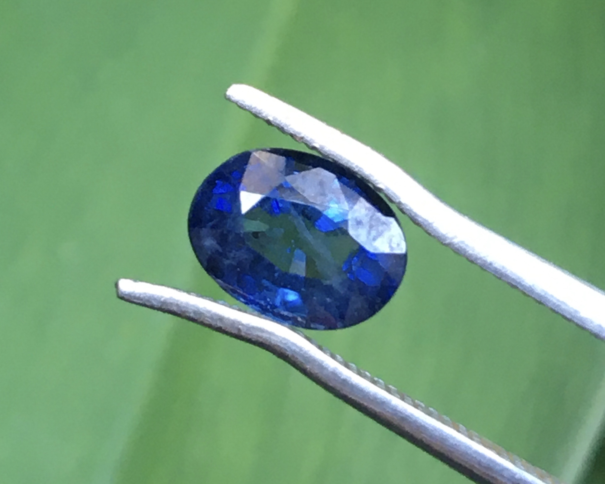 พลอยไพลิน เผาเก่า ขนาด 1.23 กะรัต ขนาด 7.0x5.2 มิล พลอยถ่ายแสงธรรมชาติสีน้ำเงินสวยจากบ่อแอฟริกา